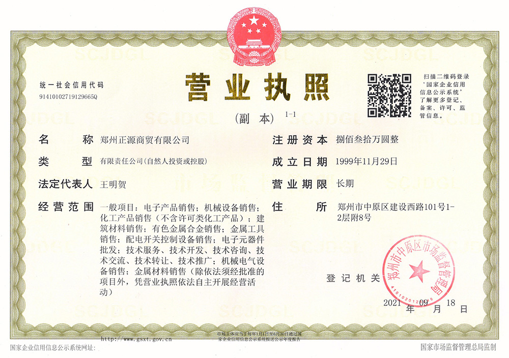 鄭州正源商貿(mào)有限公司 營(yíng)業(yè)執(zhí)照